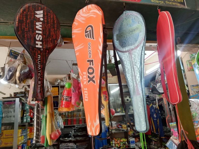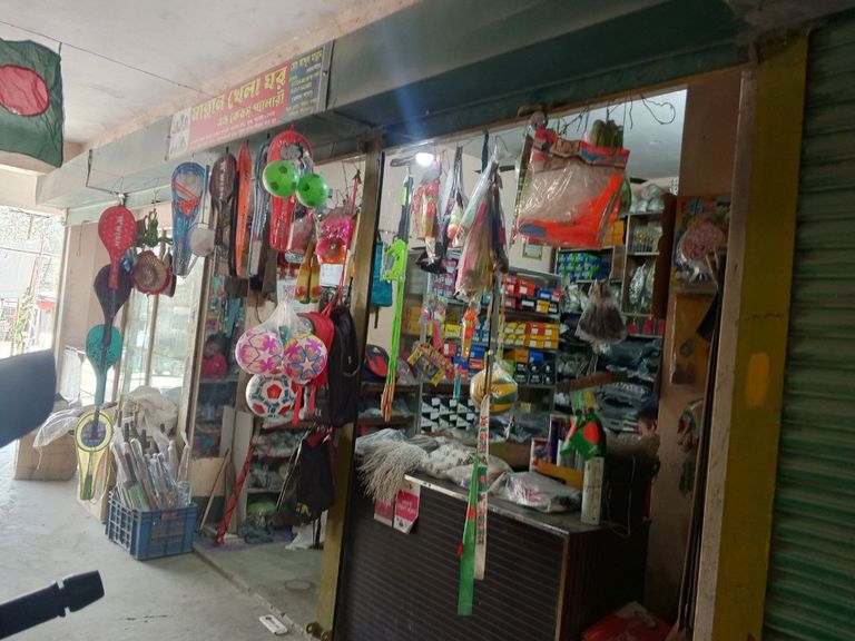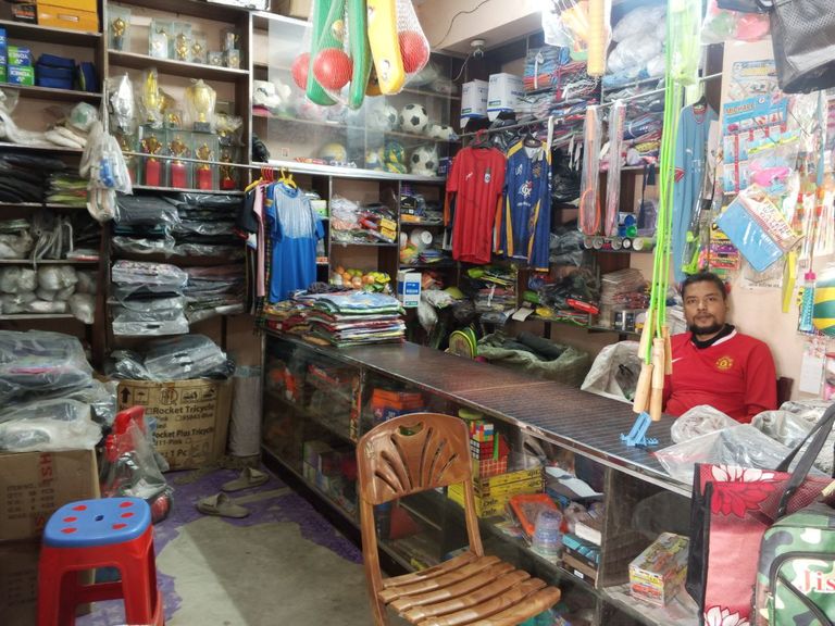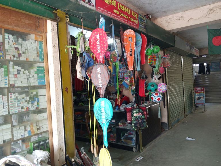 Since sports is the only shop in our market, the shop owner tries to keep various sports equipment in the shop, collects and sells sports equipment from different places including Dhaka, all kinds of sports equipment, exercise equipment, school and college keds bags, raincoats, umbrellas and high-quality shoes are available in his shop, he sells all these items at cheap prices.